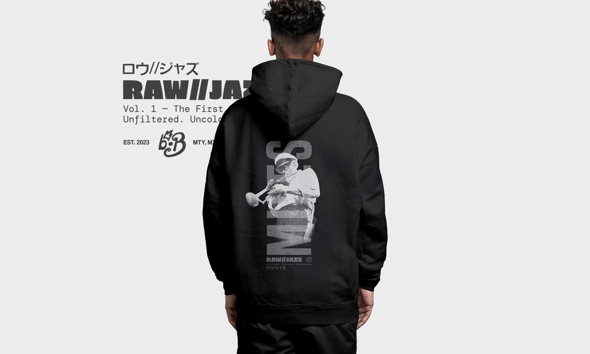 Miles Davis Hoodie — RAW//JAZZ Vol. 1 | BeatBrush Monochrome Street Merch