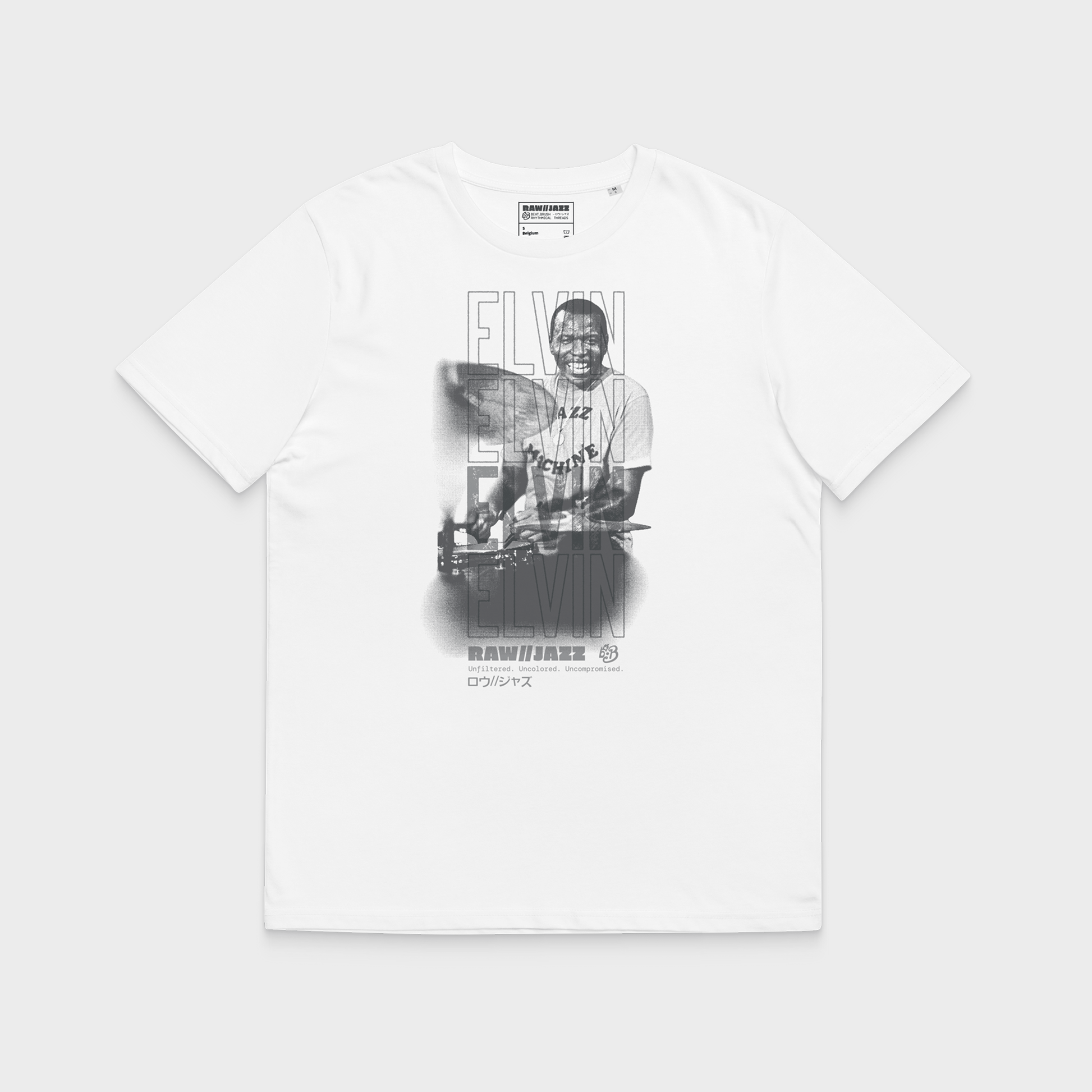 Elvin Jones Tee — RAW//JAZZ Vol. 1 | BeatBrush Monochrome Street Merch